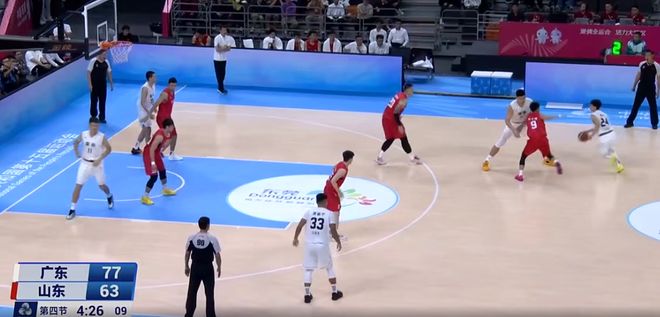 上半場廣東和山東幾乎打成平手。廣東手感冰涼,半場三分出手20次僅命中4球,全隊哐哐打鐵。最準的不是趙睿也不是胡明軒,甚至不是徐杰,而是7中5得到11分的賀希寧。山東這邊靠著陶漢林在內(nèi)線攪動風(fēng)云,半場砍下15分9籃板,而王嵐嵚則在外線發(fā)炮,得到9分2籃板。