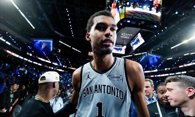 衛(wèi)冕冠軍輸球的原因很簡單,對方陣中有高達——維克托-文班亞馬幾乎以一己之力改變了比賽的走勢。這可不是在無腦吹這位NBA歷史上身體天賦最為恐怖的狀元秀,文班亞馬本場比賽迎來復(fù)出,他職業(yè)生涯首次替補出戰(zhàn),并且受嚴格出場時間限制影響,就打了20分39秒,結(jié)果交出了22分9籃板2助攻1搶斷2蓋帽的成績單,個人正負值是讓人瞠目結(jié)舌的+21。也就是說,在文班下場休息的另外27分鐘時間里,馬刺實際上輸了整整19分。