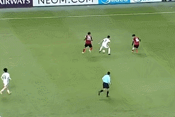 然而最后的“啊”字還沒(méi)說(shuō)完,韋世豪就丟球了,被對(duì)手后衛(wèi)一個(gè)搶占身位,卡位把韋世豪跟皮球隔開(kāi),接著想護(hù)球出底線。就在這個(gè)節(jié)骨眼,韋世豪大步追上,順勢(shì)把對(duì)手推倒在地(下圖)。